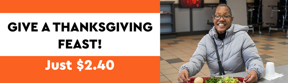 You can give a hot, nourishing Thanksgiving meal for just $2.40!Time is running out – and 24,000 meals are still needed this Thanksgiving season. Please help today!